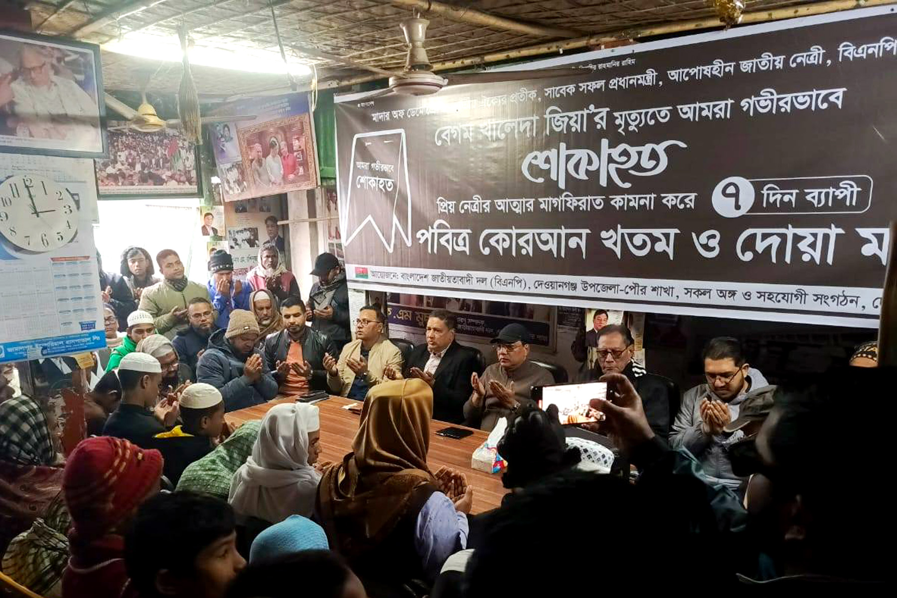 মরহুমা দেশনেত্রী, গণতন্ত্রের মা ও আপোষহীন নেত্রী বেগম খালেদা জিয়ার মাগফিরাত ও রুহের শান্তি কামনায় দেওয়ানগঞ্জ উপজেলা বিএনপি, পৌর বিএনপি এবং অঙ্গ ও সহযোগী সংগঠনের উদ্যোগে এক দোয়া মাহফিল অনুষ্ঠিত হয়।দোয়া মাহফিলে প্রধান অতিথি হিসেবে উপস্থিত ছিলেন দেওয়ানগঞ্জ উপজেলা বিএনপির সভাপতি, বিএনপির কোষাধ্যক্ষ ও সাবেক সংসদ সদস্য জনাব এম. রশিদুজ্জামান মিল্লাত।প্রধান অতিথির বক্তব্যে তিনি বলেন,আজকের এই দোয়া মাহফিলে দাঁড়িয়ে কথা বলতে গিয়ে ভাষা হারিয়ে ফেলছি। কারণ আমরা শুধু একজন রাজনৈতিক নেত্রীকে নয়—হারিয়েছি এক সংগ্রামী মাকে, এক আপোষহীন দেশনেত্রীকে, যিনি সারাজীবন গণতন্ত্র, মানুষের অধিকার ও দেশের স্বাধীনতার জন্য নিরলসভাবে লড়াই করে গেছেন।বেগম খালেদা জিয়া ছিলেন না শুধু বিএনপির চেয়ারপারসন—তিনি ছিলেন বাংলাদেশের গণতন্ত্রের প্রতীক। জুলুম-নির্যাতন, কারাবরণ কিংবা অসুস্থতা—কোনো কিছুই তাকে মাথা নত করতে পারেনি। স্বৈরাচারের রক্তচক্ষু উপেক্ষা করে তিনি সবসময় বুক চিতিয়ে দাঁড়িয়েছিলেন সাধারণ মানুষের অধিকার রক্ষায়।তিনি বিশ্বাস করতেন, এ দেশের মানুষই শক্তি, মানুষই ভরসা। তাই জীবনের প্রতিটি মুহূর্ত তিনি জনগণের কল্যাণে উৎসর্গ করেছেন। ক্ষমতার মোহ নয়, বরং গণতন্ত্র পুনরুদ্ধারই ছিল তার একমাত্র লক্ষ্য। আজ আমরা গভীর বেদনা ও শ্রদ্ধার সঙ্গে সেই নেত্রীকে স্মরণ করছি, যিনি আমাদের সাহস দিয়েছেন, পথ দেখিয়েছেন এবং মাথা উঁচু করে বাঁচতে শিখিয়েছেন।আমাদের দায়িত্ব হলো তার দেখানো পথে ঐক্যবদ্ধ হয়ে গণতন্ত্র, ন্যায়বিচার ও মানুষের ভোটাধিকার পুনরুদ্ধারের সংগ্রাম অব্যাহত রাখা।বক্তব্য শেষে তিনি মহান আল্লাহ তায়ালার দরবারে দোয়া করে বলেন,হে আল্লাহ, তুমি আমাদের দেশনেত্রী বেগম খালেদা জিয়াকে জান্নাতুল ফেরদৌস নসিব করো। আমাদের সবাইকে তার আদর্শ বুকে ধারণ করে দেশ ও মানুষের কল্যাণে কাজ করার তৌফিক দাও।আমিন।অনুষ্ঠানে আরও উপস্থিত ছিলেন দেওয়ানগঞ্জ উপজেলা বিএনপির সদস্য এম. রশিদুজ্জামান মিল্লাত সাহেবের সুযোগ্য পুত্র ব্যারিষ্টার শাহাদাৎ বিন জামান শোভন, দেওয়ানগঞ্জ উপজেলা বিএনপির সাধারণ সম্পাদক আব্দুর রশিদ সাদা, সিনিয়র সহ-সভাপতি বাবু শ্যামল চন্দ, সাংগঠনিক সম্পাদক মাসুদ হাবিব পলিন, সাংগঠনিক সম্পাদক সাঈদ বিন আনোয়ার সজিব।এছাড়াও উপস্থিত ছিলেন পৌর বিএনপির সভাপতি মঞ্জু হক মঞ্জু, সাধারণ সম্পাদক আতিকুর রহমান সাজু, সিনিয়র সহ-সভাপতি সাদেক আক্তার নেওয়াজী টফি, সাংগঠনিক সম্পাদক ফরহাদ হোসেনসহ বিএনপি এবং সকল অঙ্গ ও সহযোগী সংগঠনের নেতৃবৃন্দ।দোয়া মাহফিলে মরহুমা বেগম খালেদা জিয়ার আত্মার মাগফিরাত কামনা করা হয় এবং দেশ ও জাতির শান্তি, গণতন্ত্র ও মানুষের কল্যাণ কামন