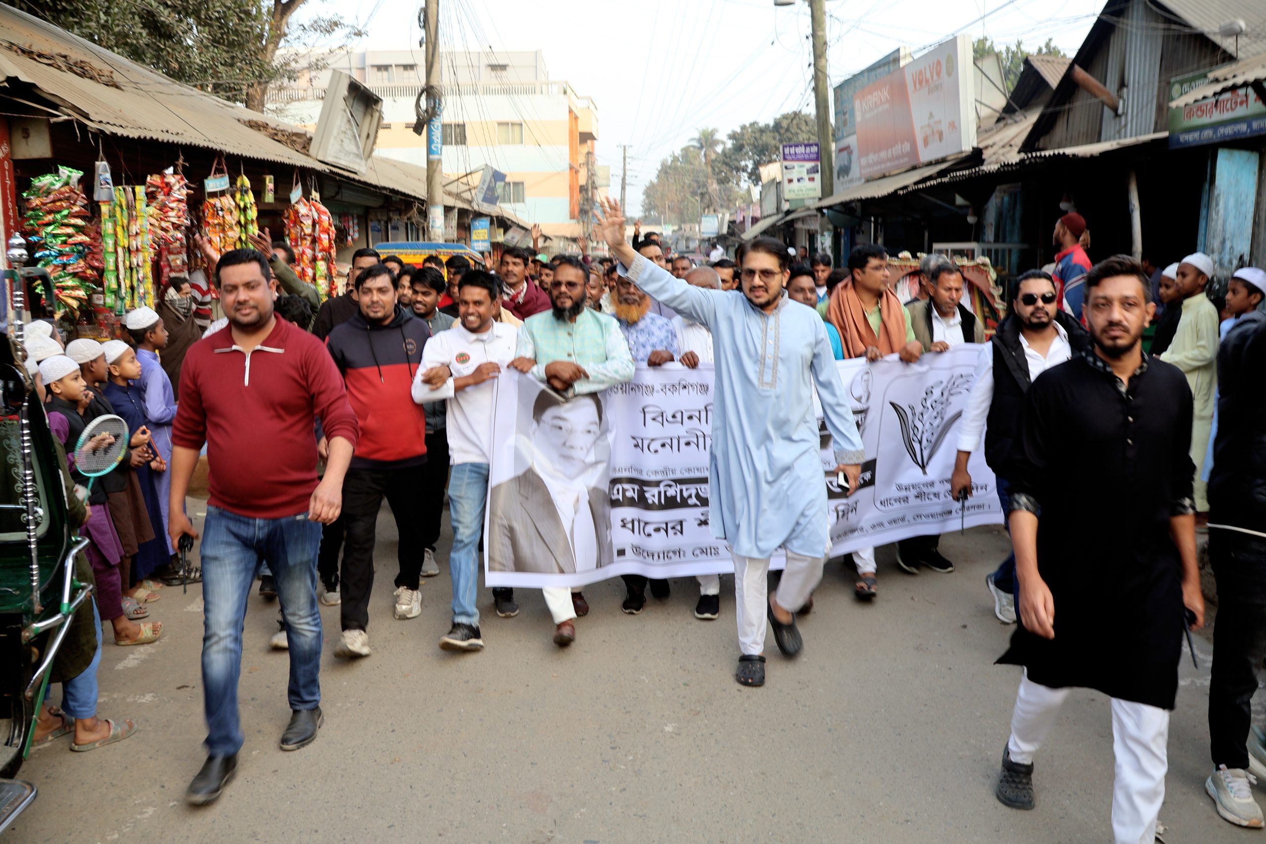 আসন্ন ত্রয়োদশ জাতীয় সংসদ নির্বাচনে দেওয়ানগঞ্জ-বকশীগঞ্জ আসনে বিএনপি জোট মনোনীত সংসদ সদস্য প্রার্থী জননেতা এম. রশিদুজ্জামান মিল্লাত–এর পক্ষে দেওয়ানগঞ্জ পৌরসভার ৩নং ওয়ার্ডে সাবেক কাউন্সিলর আব্দুল মালেক–এর নেতৃত্বে এক বিশাল মিছিল অনুষ্ঠিত হয়েছে। মিছিলটিতে ধানের শীষ প্রতীকে ভোট প্রার্থনা করে বিভিন্ন সড়ক প্রদক্ষিণ করা হয়। এতে প্রধান অতিথি হিসেবে উপস্থিত ছিলেন এম. রশিদুজ্জামান মিল্লাতের সুযোগ্য পুত্র ব্যারিস্টার শাহাদাৎ বিন জামান সোভন।এ সময় ব্যারিস্টার শাহাদাৎ বিন জামান সোভন বলেন,দেওয়ানগঞ্জ-বকশীগঞ্জের সার্বিক উন্নয়ন, তরুণ প্রজন্মের কর্মসংস্থান সৃষ্টি এবং নদীভাঙন রোধে আপনারা সবাই ঐক্যবদ্ধ হয়ে ভোটের দিন সকাল সকাল ভোটকেন্দ্রে গিয়ে ধানের শীষ প্রতীকে ভোট দিয়ে আমার বাবা এম. রশিদুজ্জামান মিল্লাতকে বিজয়ী করবেন—এই প্রত্যাশা করি। তিনি আরও বলেন, সাবেক কাউন্সিলর আব্দুল মালেক এবং ৩নং ওয়ার্ডবাসী যে উৎসাহ-উদ্দীপনার মাধ্যমে এত বড় আয়োজন করেছেন, তার জন্য তিনি আন্তরিক ধন্যবাদ ও কৃতজ্ঞতা প্রকাশ করেন। মিছিলে আরও উপস্থিত ছিলেন উপজেলা বিএনপির সাংগঠনিক সম্পাদক মাসুদ হাবিব পলিন, উপজেলা যুবদলের আহ্বায়ক মঞ্জু হোসেন, প্রথম যুগ্ম আহ্বায়ক আলা উদ্দিন আল মামুন, উপজেলা শ্রমিক দলের সাধারণ সম্পাদক ছোরোয়ার আলম, উপজেলা স্বেচ্ছাসেবক দলের যুগ্ম আহ্বায়ক জাহিদুল ইসলাম, ৩নং ওয়ার্ড বিএনপির সভাপতি এস এম আবেদীন নুর শাহীসহ ওয়ার্ড বিএনপি ও অঙ্গ-সহযোগী সংগঠনের নেতৃবৃন্দ। সভাপতির বক্তব্যে সাবেক কাউন্সিলর আব্দুল মালেক ৩নং ওয়ার্ডবাসীকে এমন একটি সফল আয়োজনের জন্য ধন্যবাদ জানান এবং সবাইকে ভোটের দিন সকাল সকাল ভোটকেন্দ্রে গিয়ে ধানের শীষ প্রতীকে ভোট দিয়ে এম. রশিদুজ্জামান মিল্লাতকে বিজয়ী করার আহ্বান জানান।